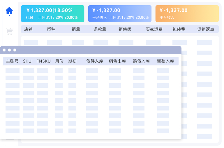支持按 产品、订单、店铺、平台为维度计算毛利润,支持导入费用,核酸净利润